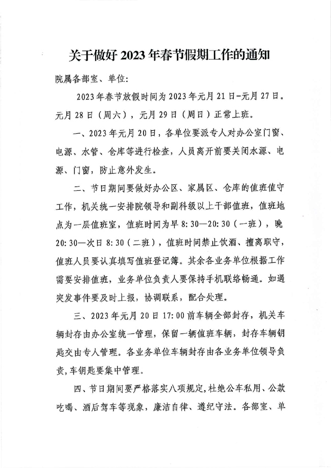 關(guān)于做好2023年春節(jié)假期工作的通知