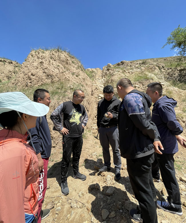 活動(dòng)中,礦產(chǎn)中心副主任、“右玉金礦項(xiàng)目”負(fù)責(zé)人陳志方向大家細(xì)致講解了該項(xiàng)目立項(xiàng)、設(shè)計(jì)和實(shí)施的進(jìn)度,與大家共同交流了該地典型的地質(zhì)構(gòu)造現(xiàn)象以及項(xiàng)目部近期的工作重點(diǎn)。與大家分享了自己參加工作以來(lái),一直扎根于野外一線(xiàn),參與完成數(shù)項(xiàng)國(guó)家、省級(jí)重點(diǎn)項(xiàng)目的心得體會(huì)。在野外實(shí)訓(xùn)過(guò)程中,帶領(lǐng)大家到野外工區(qū)實(shí)地踏勘,對(duì)地層構(gòu)造、礦床成因等進(jìn)行了重點(diǎn)講解。