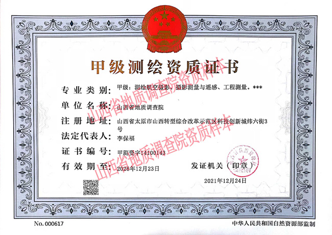 為適應地勘單位改革新形勢,積極開拓新市場,提升單位實力,在院領導和各部門、中心的的大力支持下,我院在完成乙級測繪資質(zhì)復審換證的基礎上,于12月初提交了甲級測繪資質(zhì)申請, 12月24日取得甲級測繪資質(zhì)證書,資質(zhì)類別包含測繪航空攝影、攝影測量與遙感、工程測量三個專業(yè)。