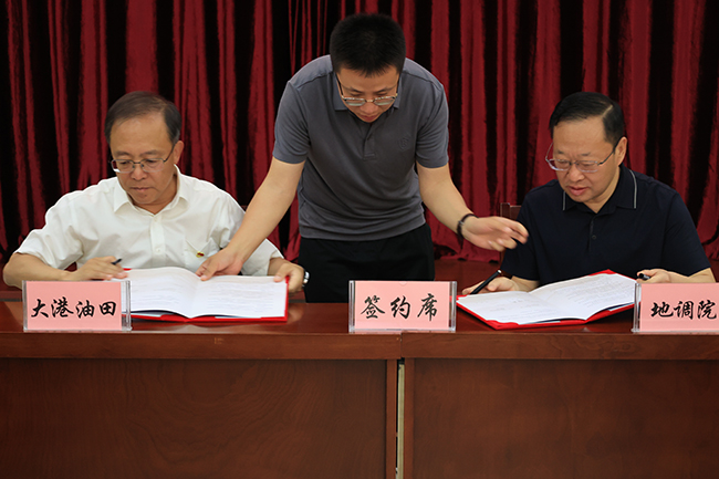 儀式上,在雙方與會(huì)人員的共同見(jiàn)證下,地調(diào)院有限公司董事長(zhǎng)李愛(ài)民和大港油田公司經(jīng)理孫澤新,代表雙方現(xiàn)場(chǎng)簽訂合作協(xié)議。