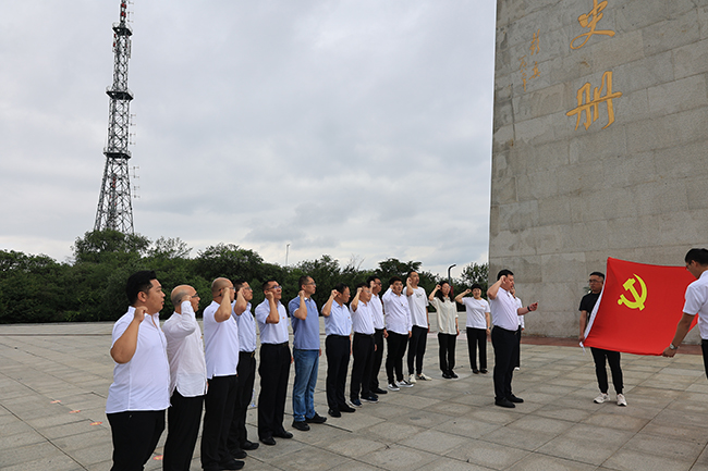 重溫入黨誓詞,牢記黨員身份。參觀結束后,在支部書記黃虎城同志的帶領下,全體黨員在百團大戰(zhàn)紀念碑前,面向鮮紅的黨旗集體宣誓,再次接受入黨誓詞的洗禮,進一步堅定理想信念,不忘共產黨員的初心使命。