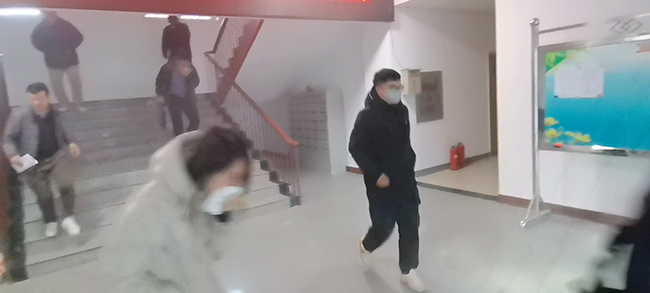 培訓(xùn)結(jié)束后,全體參訓(xùn)人員參加火災(zāi)逃生應(yīng)急演練。演練主要模擬機(jī)關(guān)辦公樓1層辦公室內(nèi)因用電線路老化、線路短路起火導(dǎo)致辦公樓內(nèi)發(fā)生火災(zāi)事故的場景。