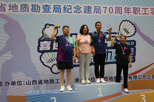 2024 年 8 月1日至 5日,在山西省地質(zhì)勘查局紀(jì)念建局70周年職工羽乒聯(lián)賽中,地調(diào)院有限公司羽毛球、乒乓球兩組參賽選手通過頑強(qiáng)的拼搏,贏得了羽毛球團(tuán)體第三名和混雙第一名、乒乓球團(tuán)體第四名和單打第二名的好成績。