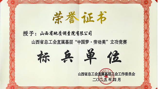 近日,山西省總工會直屬基層工委公布“中國夢·勞動美”立功競賽評選結(jié)果,地調(diào)院有限公司憑借在地質(zhì)勘查與生態(tài)保護領(lǐng)域的突出貢獻,獲評“標兵單位”稱號,彰顯了國有公益類科技型企業(yè)的責任擔當與創(chuàng)新實力。