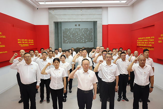 活動中,全體黨員干部面向黨旗,莊嚴舉起右拳,重溫入黨誓詞。鏗鏘有力的誓言在展廳內(nèi)回蕩,既表達了大家堅守清廉本色的堅定信念,也彰顯了不忘初心、牢記使命的政治擔(dān)當。