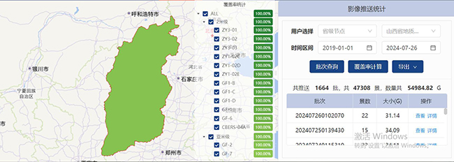截止到2024年7月26日,山西省地質(zhì)調(diào)查院有限公司作為省級節(jié)點(diǎn)單位累計(jì)接收1664批,共47308景影像數(shù)據(jù),數(shù)據(jù)量53.69TB。