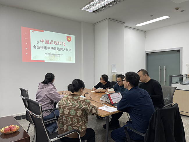2023年3月2日,自然資源遙感信息研究院黨支部開展學(xué)習(xí)黨的二十大精神黨課學(xué)習(xí),支部書記張廷以“中國式現(xiàn)代化全面推進(jìn)中華民族偉大復(fù)興”為主題展開宣講。