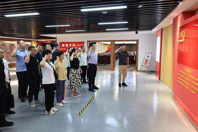 參觀結(jié)束后,全體黨員面對(duì)黨旗,重溫入黨誓詞,在鏗鏘有力的宣誓聲中回望初心,匯聚起矢志不渝跟黨走的磅礴力量。